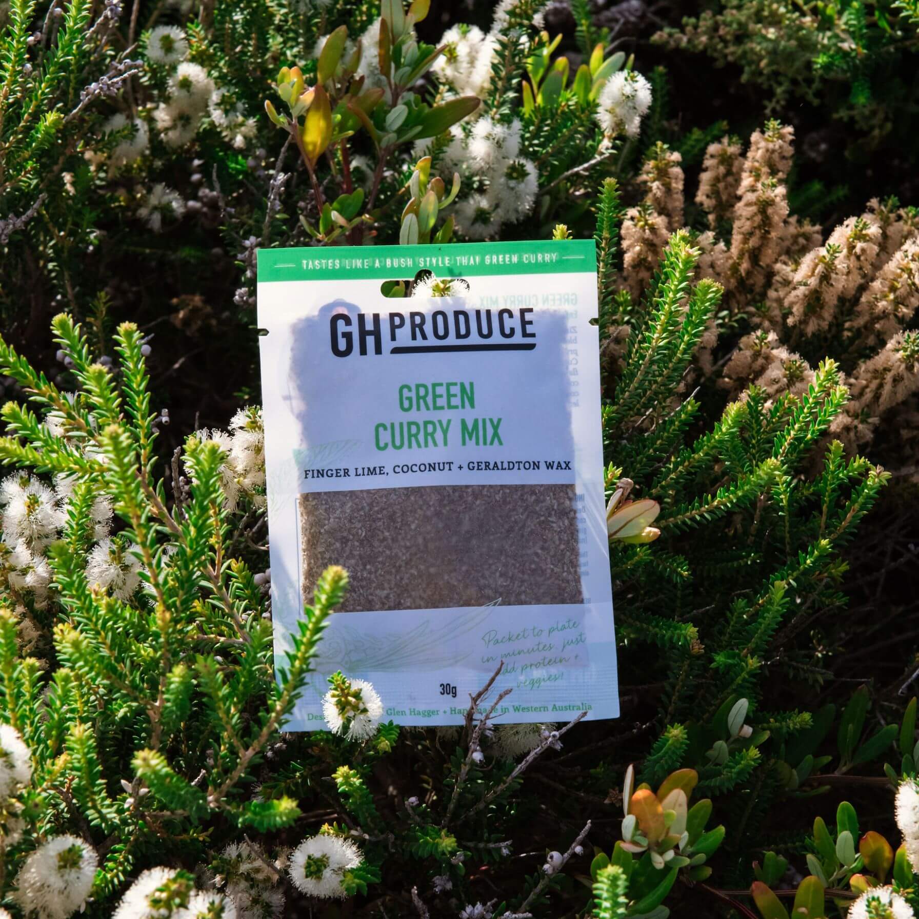 Zingy, refreshing, and fruity, this beautiful blend of Australian bush herbs and hemp protein makes a vibrant and unique Green Curry spice mix. Experience a burst of flavours with the fusion of cumin and coriander, paired with the sweetness of coconut, and a native twist with finger lime, lemon myrtle, and Geraldton wax.