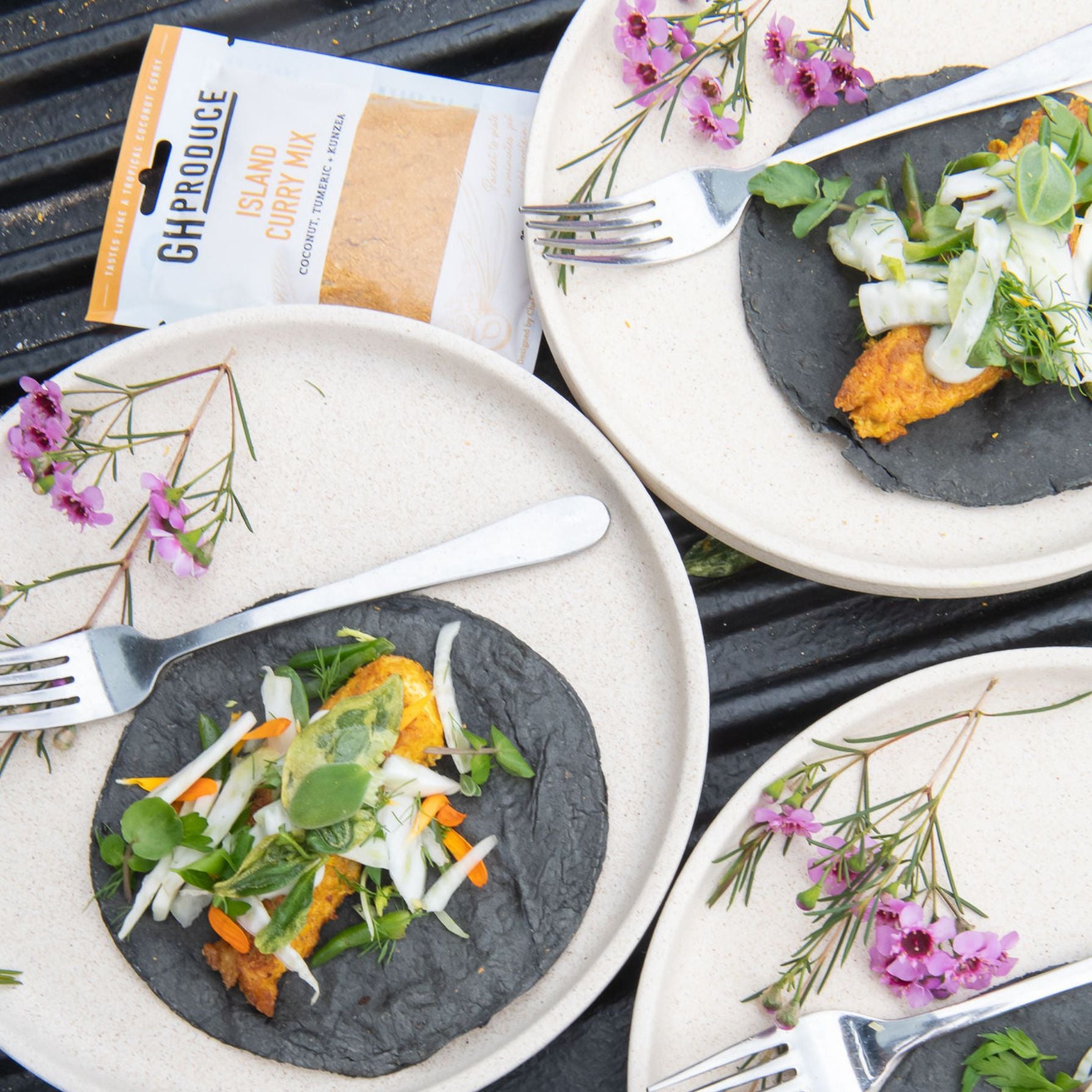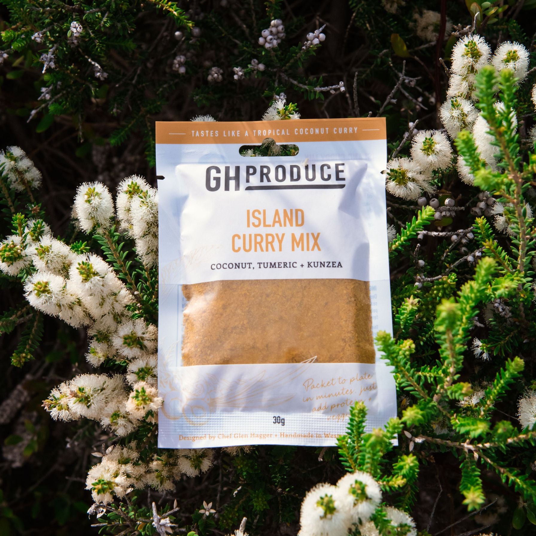 With subtle flavours of coconut, turmeric, and ginger, this is a light, refreshing curry which can be enjoyed any night of the week! The addition of kunzea - a native Tasmanian beach herb, and WA desert limes makes this a versatile mix that tastes delicious on seafood, chicken, beef, or veggies.