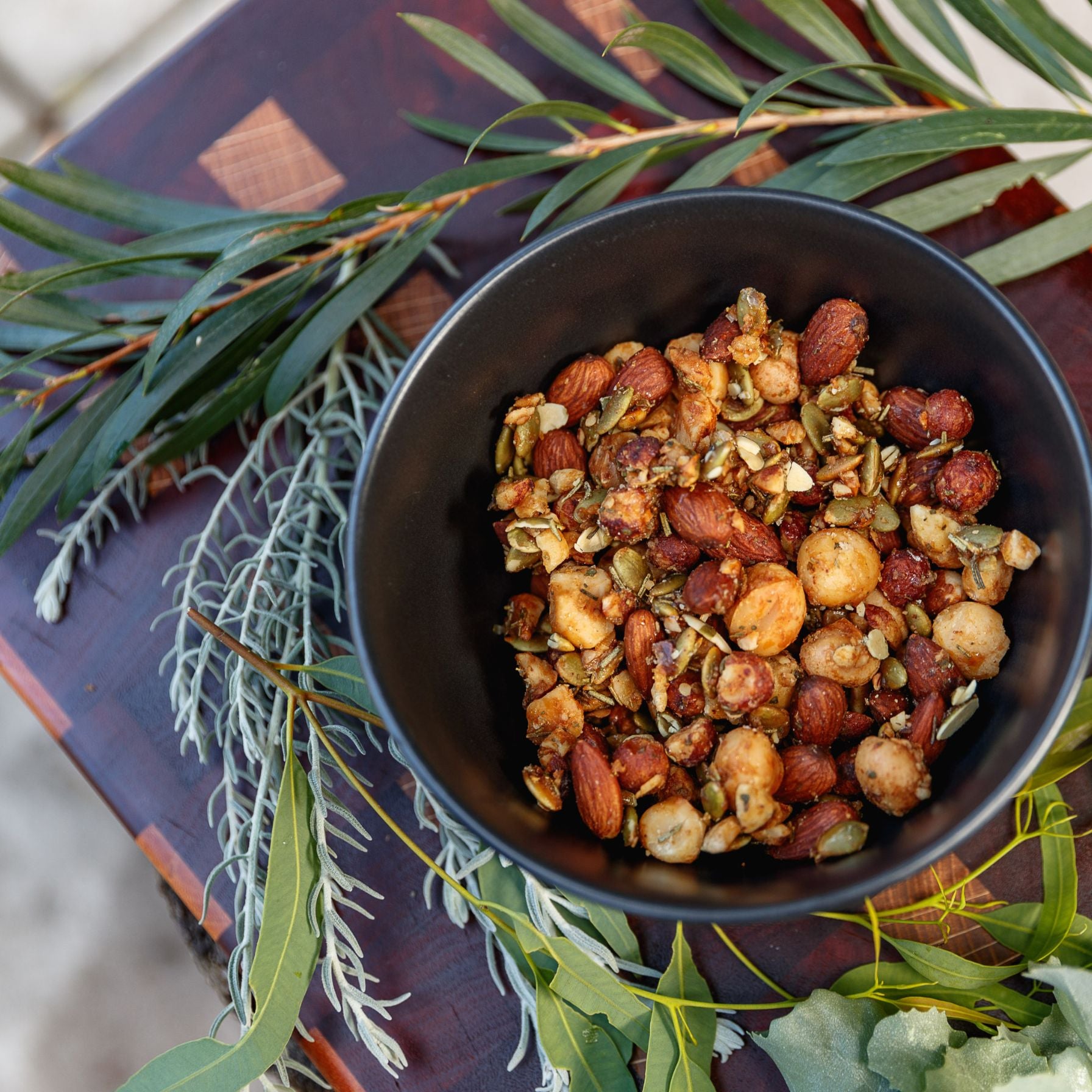 This recipe was created as a healthy snack combining sweet and salty flavours. The first crunch delivers a hint of herbs and a touch of salt, with a sweet aftertaste from the creamy macadamias and honey. This delicious mix will melt in your mouth and leave you wanting more.